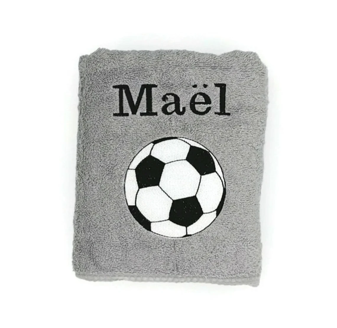 Simple, sportive et élégante, cette serviette personnalisée est parfaite pour les passionnés de football. Son motif ballon brodé avec soin en fait un accessoire unique, idéal pour accompagner les jeunes sportifs dans toutes leurs activités.