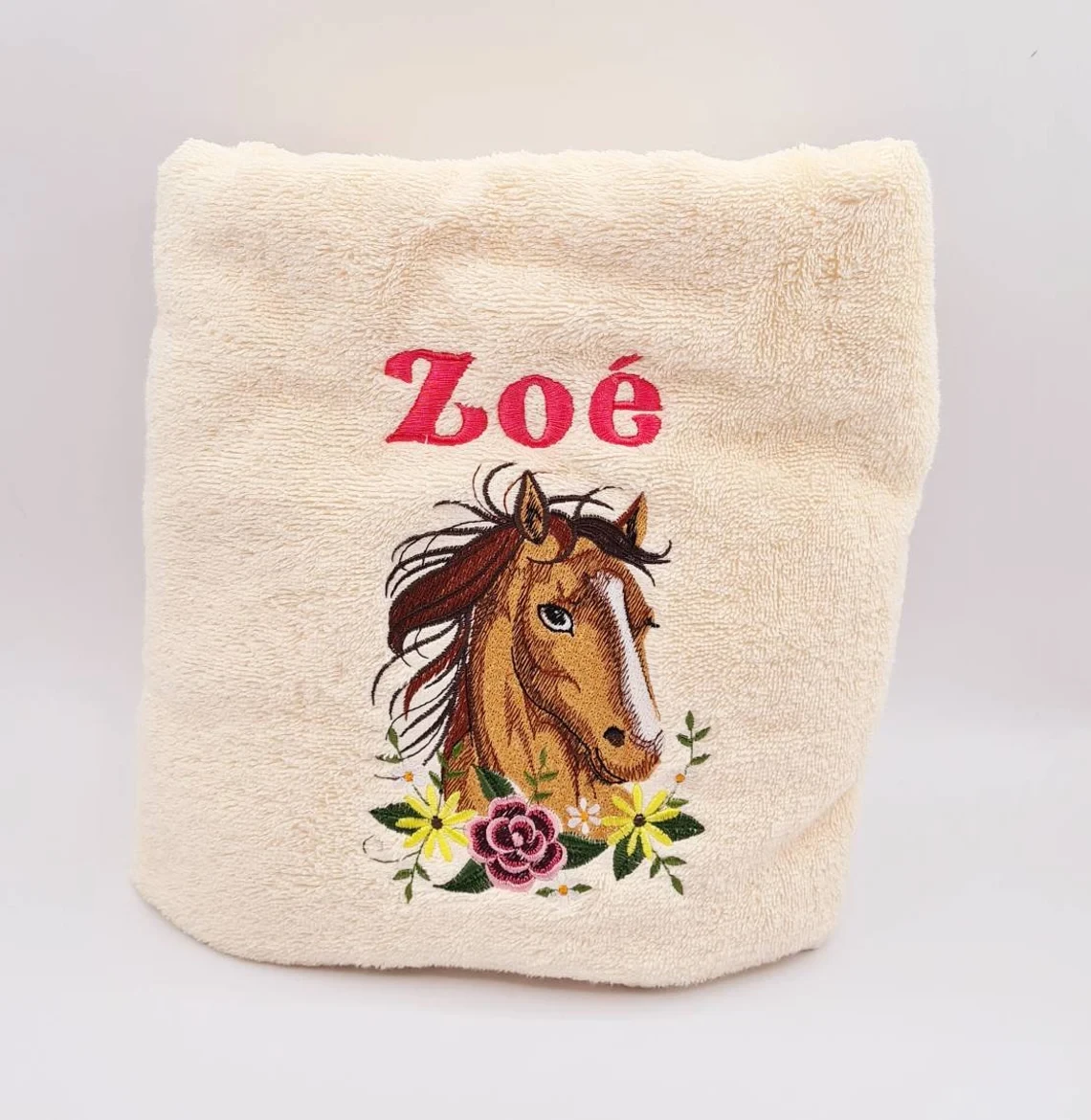 🐴 Serviette personnalisée – Cheval fleuri brodé