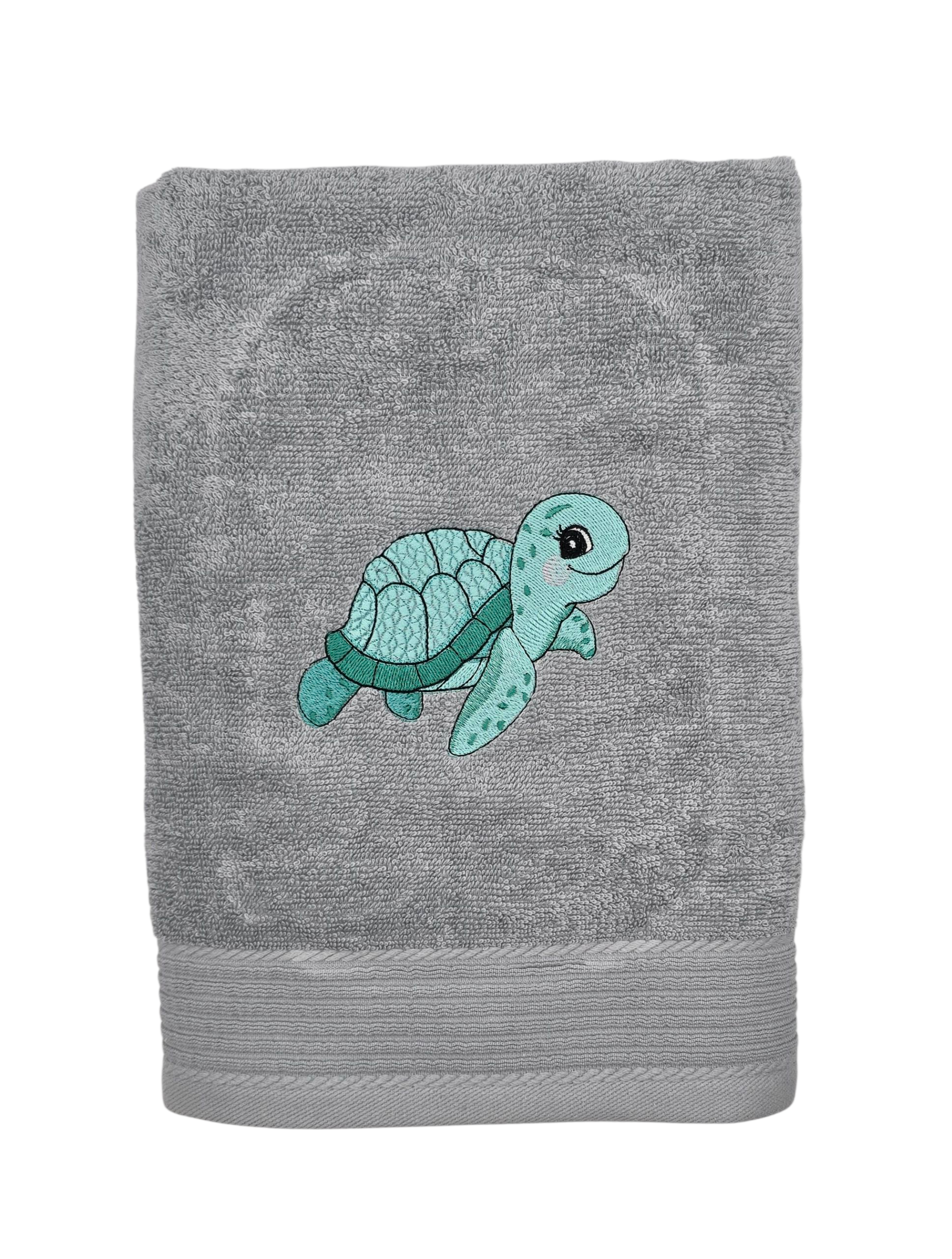 Ce motif tortue apporte une touche de fraîcheur et de bonne humeur. Une serviette personnalisée unique, tendre et pleine de charme, parfaite pour offrir ou égayer une salle de bain.