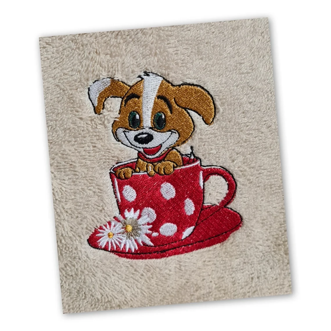 🐶 Serviette personnalisée – Chien dans la tasse brodé