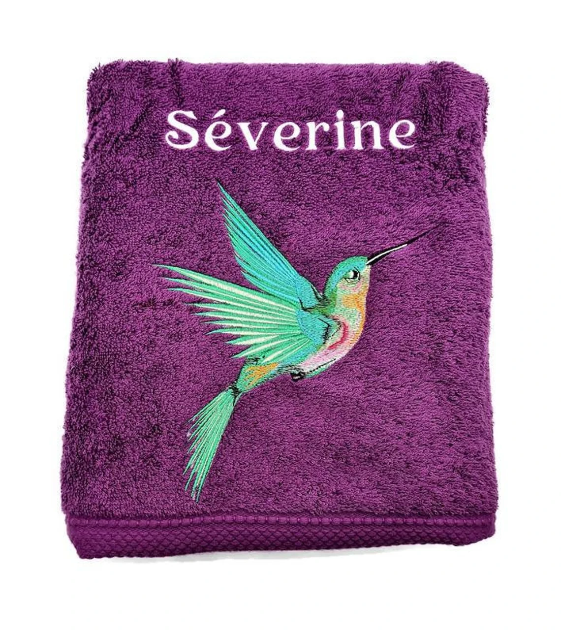 🌺🐦 Serviette personnalisée – Colibri brodé