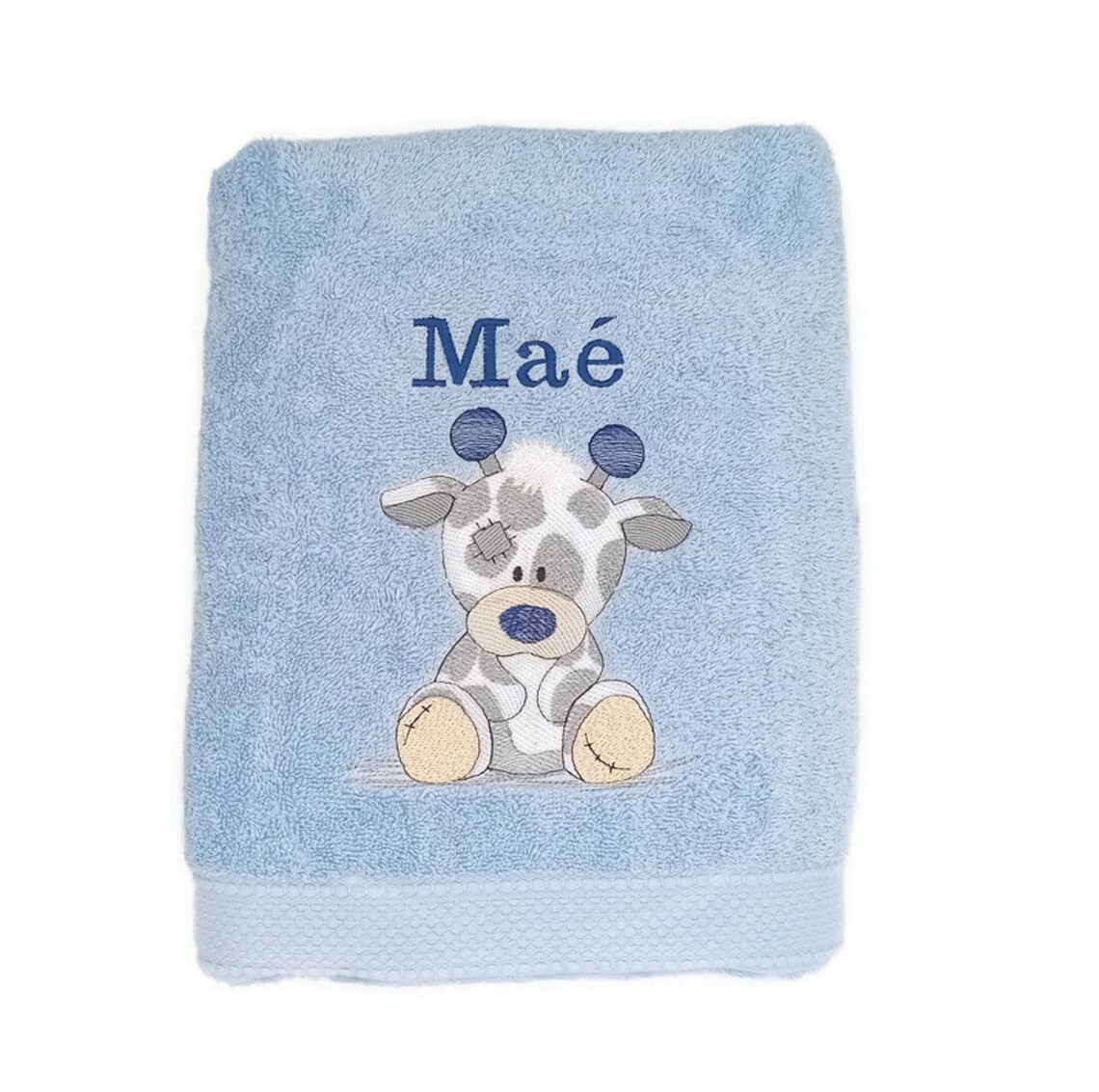 🦒💛 Serviette personnalisée – Petite girafe peluche brodée