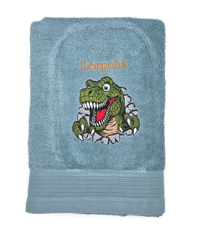Offrez à votre enfant une serviette à la fois douce, sûre et pleine de caractère grâce à ce modèle en 100% coton, certifié OEKO‑TEX®, garantissant l’absence de substances nocives. Son tissu bleu profond est sublimé par une broderie détaillée représentant un dinosaure vert, un motif amusant qui plaira à tous les petits explorateurs.