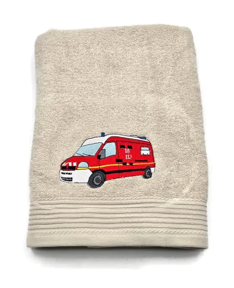 🚒 Alerte au Bain ! – Serviette Personnalisée "Ambulance VSAV Pompier"