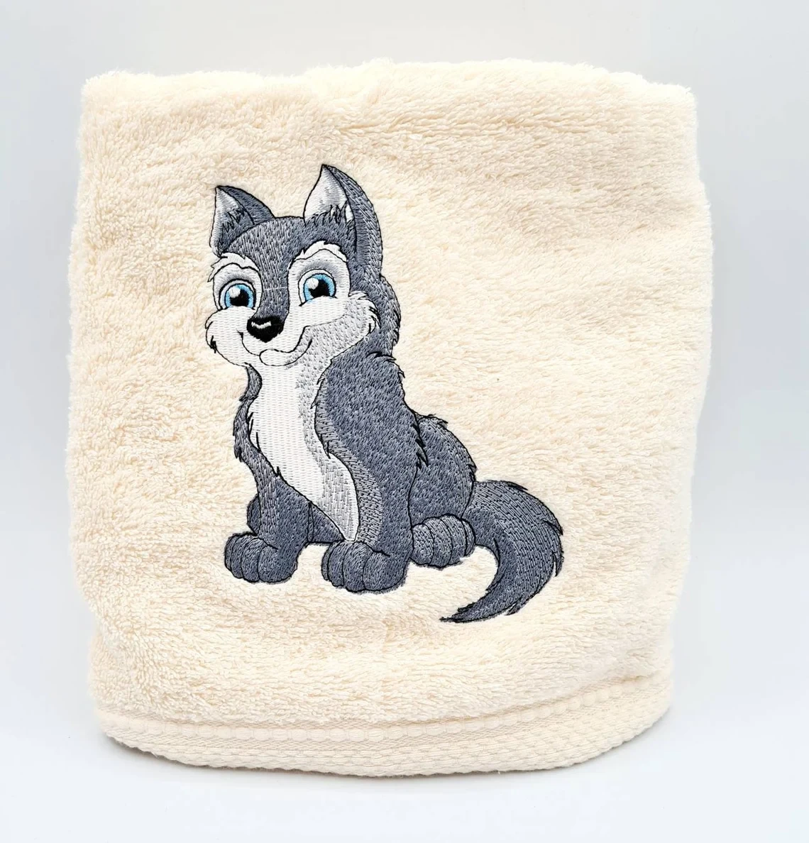 Personnalisation Unique : Faites broder le prénom juste au-dessus du louveteau pour transformer cette serviette en un objet personnel et précieux.